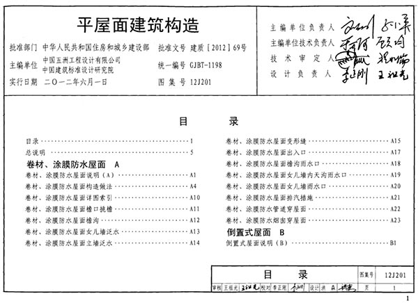 这本12J201图集是由中华人民共和国住房和城乡建设部发布的一本国家建筑标准设计图集,全名为《平屋面建筑构造图集》。它从2012年开始实施,取代了之前的一些旧版标准设计图集。这本图集主要适用于屋面排水坡度在2%到5%、结构层为钢筋混凝土的平屋面建筑。
