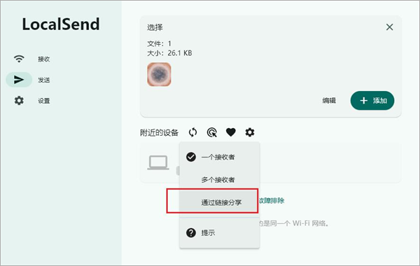 3、若接收端没有安装LocalSend,也可以通过链接模式传送