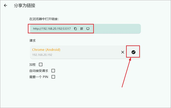 4、在接收端打开该链接(请确保目标连接的是同一个 Wi-Fi 网络),接受连接请求