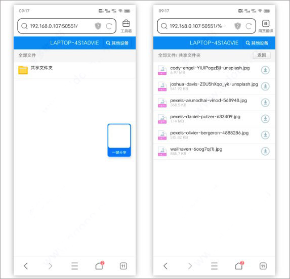 无需APP,只需要登录局域网就能共享