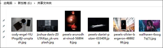 3、比如我这里放了几张图片,到共享文件夹里: