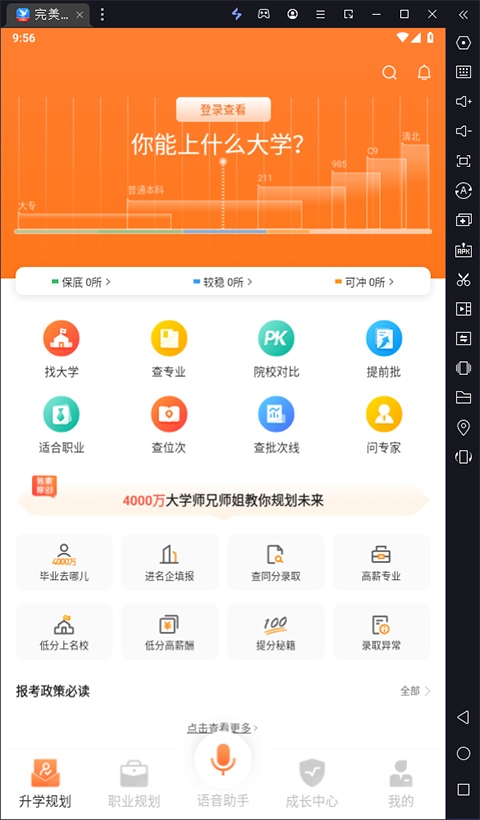 完美志愿电脑版是一款专门借助安卓模拟器运行为备战高考的学子们打造一款高考填报志愿指导软件,这是提供真实高考数据和毕业去向的高考志愿填报助手,这里能为广大考生提供最新最全面的高考志愿填报指南和志愿攻略,给每一位考生最个性化的志愿推荐,帮助你选到最理想的大学以及专业。