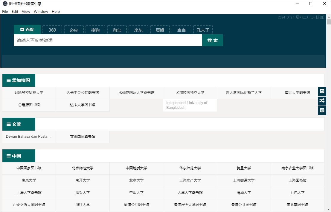 图书馆图书搜索引擎是一款专业且强大的图书文献查询软件,通过它可以帮助用户快速查询需要的图书文献,支持查询全世界100多个国家的公共图书馆、校园图书馆、聚合搜索网站和图书网站图书等,方便用户对这些图书馆进行访问。软件提供的数字内容涉及文化教育、科普百科、绘本漫画、小学生读物等不同学科领域,能充分满足不同读者的阅读需求。