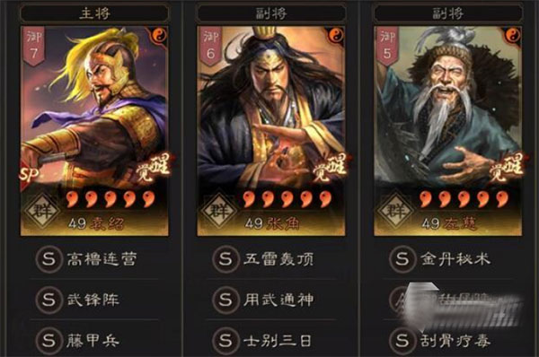 主将:SP袁绍,战法推荐 藤甲盾+武锋阵