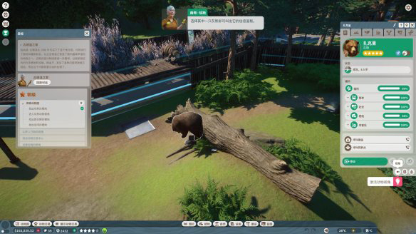 左键点击动物园中的任何目标都能将其选定,点击动物就能查看其信息面板包括状态、福利水平等等,如果点击的是游客则能看其需求和满意度,选定之后按下Esc可以取消选择。