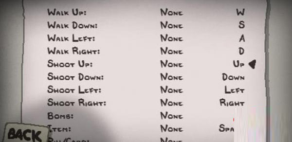 可以看到游戏按键一点儿都不复杂,在游戏的过程中,真正有用的也就是移动键和方向键,再加上个别道具使用按键。按键不复杂,并不意味游戏简单,如果你玩过弹幕类的游戏,那么以撒的结合自然不在话下。如果是新手,那一定会被惨虐。