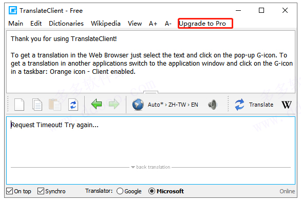 5、然后在打开软件,点击导航栏最右边的“Upgrade to Pro”,打开注册窗口;