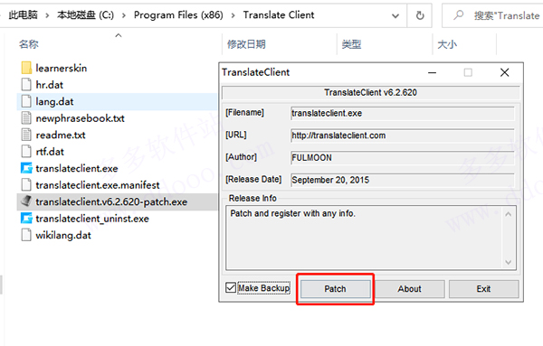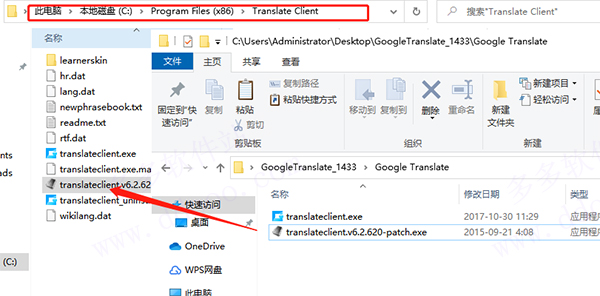 3、之后我们把激活程序复制到软件根目录下面,默认目录是【C:\Program Files (x86)\Translate Client】;