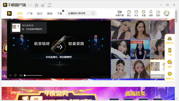 千帆直播电脑版是搜狐旗下大型在线娱乐社区,为用户提供丰富精彩的视频真人生活秀,支持数万人同时在线视频聊天、K歌跳舞,致力打造最酷的自媒体视频直播平台。同时还涵盖直播、社交、聊天、交友、短视频内容,其中24小时视频直播聊天交友不断,随时随地聊天交友。并且还有帅哥、美女、热门网红等,支持百万人同时在线视频聊天交友、K歌互动,只为打造一个好玩有趣的视频直播交友社区。不仅如此,软件还拥有高清视频画面和Live现场音效感知,能让用户与艺人零距离互动,随时随地享受演唱会超high气氛。另外,在千帆直播中,用户还可以拥有炫酷霸气的专属坐骑,也可以拥有无人能及的尊贵靓号,让你的威风请尽情在这里延续。而且只需要动动你的手指,抓紧时间,看准时机,就能轻松送你爱的TA上头条,让你的宠爱全世界都知道。最重要的是,在这里人人都可以是红人、主播,因为软件支持全民直播,可以让每个用户都能享受当主播的感觉,那么对此感兴趣的朋友欢迎下载体验。