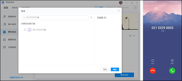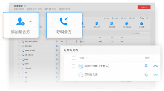 搜索通讯录,邀请与会者(软终端/硬终端),快速开会。