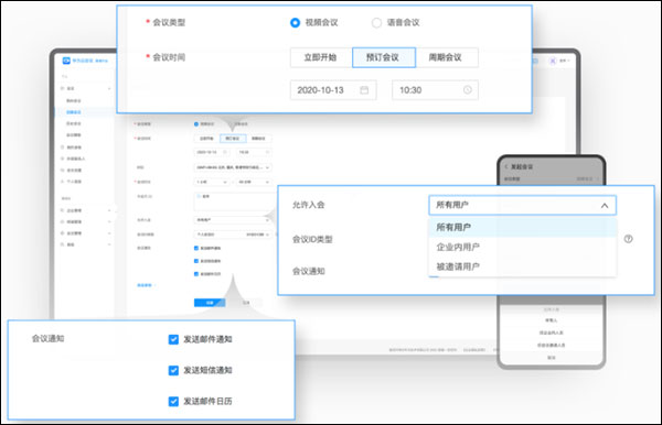 2、支持所有人入会,仅企业内人员入会,仅会议邀请人员入会,会议安全从选择入会者开始