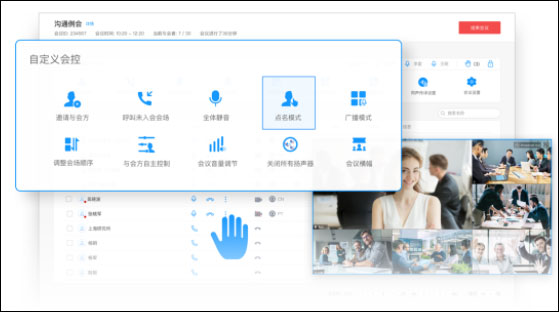 5、丰富的会控能力,支持全场静音、多画面设置、支持点名、广播、支持会中邀请与会人、主持人转移、锁定会议、开启录播等,会议主持更轻松