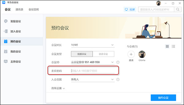 预约视频/语音会议,提前预留时间,确保重要人员参会。