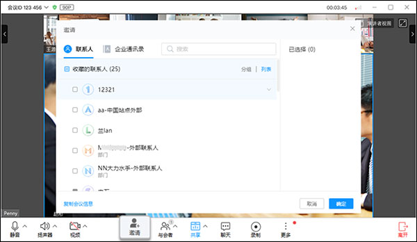 -添加企业内部成员或外部联系人参会。