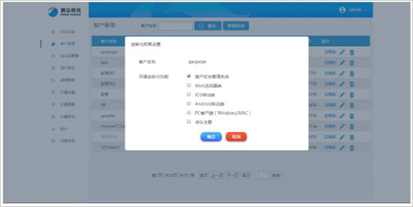 8、点击操作栏的编辑按钮,可以修改客户名称、管理员帐号、密码、是否支持录制、直播等;