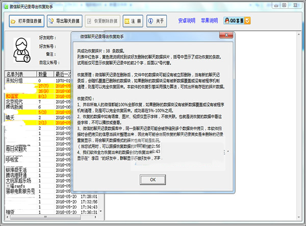 5、苹果手机不小心删除的聊天数据,可以通过本软件尝试恢复数据。效果图如下: