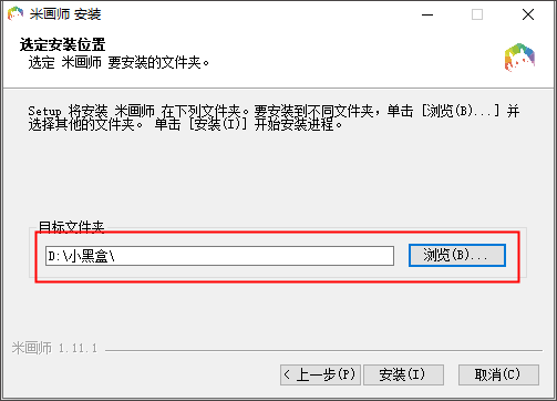 2、首先双击运行“米画师_setup.exe”程序,根据自身需要修改安装路径进行安装;