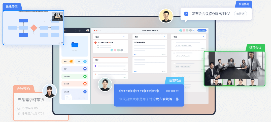 自然记录:会议共享文件自动收集,可直接共享与会人;会中批注内容,自动保存;会议可实时录制、转译,方便会议要点提炼及会议内容回顾。