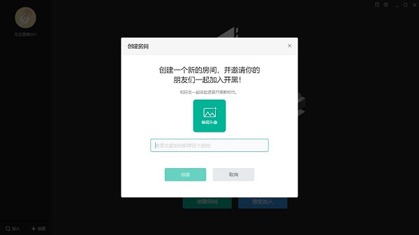 成功进入界面后,如图所示,看着非常的简单清爽,点击创建,创建一个新的房间,并邀请您的朋友们一起加入开黑,同时你还可以为自己设定的房间自定义命名。