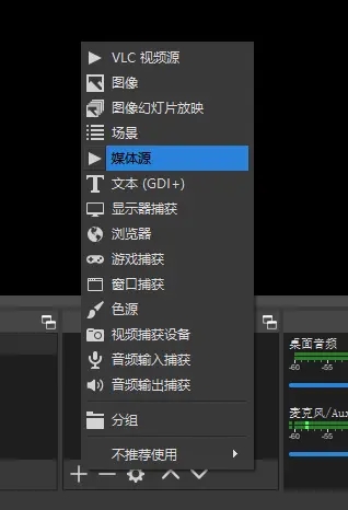 回到主界面,在下方的“来源”栏下点击“+”加号,添加一个“媒体源”。