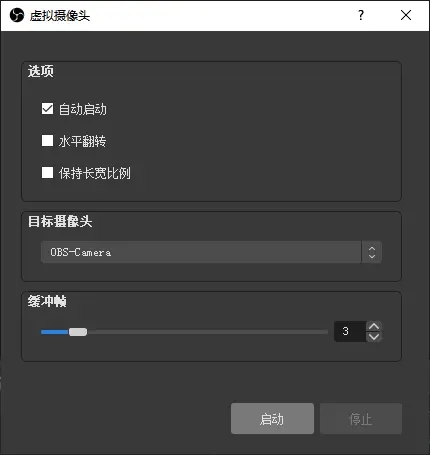 勾选“自动启动”,这样在每次打开OBS时便会自动启动虚拟摄像头。