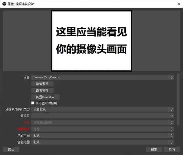 正常情况下,在上方框里应该可以看见你电脑摄像头画面了,点击确定即可。
