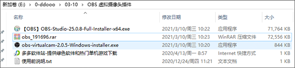 1、下载解压即可获得OBS主程序和虚拟摄像头插件OBS-Virtual-Cam