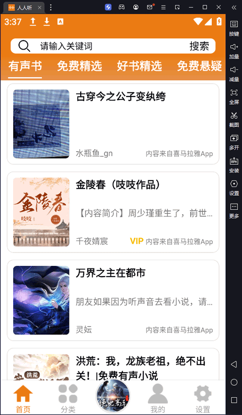 这款老白故事电脑版(现更名为人人听)真的挺棒!它是为电脑设计的免费听书软件,基于安卓模拟器运行,完美适配大屏幕,适合长时间使用。里面的内容超丰富,有小说、评书、相声、音乐等等,满足各种场景需求,无论是通勤路上当娱乐伴侣,还是晚上睡前放松,都能找到合适的选择。