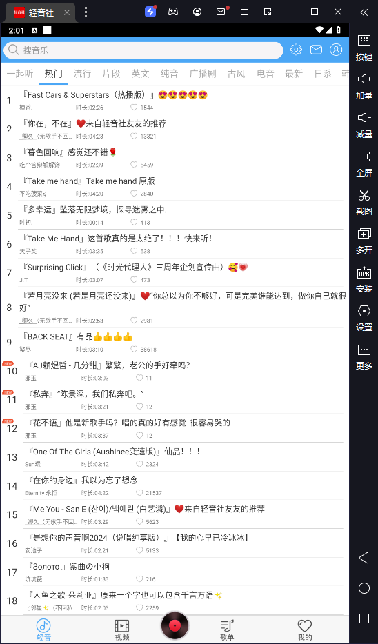 轻音社电脑版是一款基于安卓模拟器运行的PC端软件,专为二次元音乐爱好者打造,集合了丰富的二次元音乐资源,包括燃系、古风、日系等多种风格的音乐和广播剧,同时提供高清的音乐短视频,为用户带来视听双重享受。轻音社电脑版支持用户之间的社交互动,用户可以关注音乐人、收藏喜欢的音乐、发布自己的作品,与志同道合的朋友共同分享音乐的快乐。其操作便捷,界面简洁明了,且定期更新,保证用户能够获取最新的音乐资源和功能优化。无论是喜欢听歌、看视频,还是喜欢创作和分享自己的音乐作品,轻音社电脑版都能满足用户的需求,是二次元音乐爱好者不可错过的软件,有需要有入可以在本站免费下载使用。