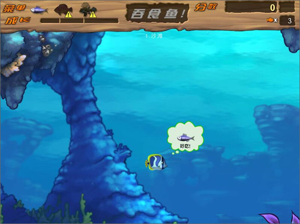 “神奇蘑菇”泡泡:吃后可使大鱼变小(尤其是在对付BOSS鱼的时候),但是得分会相应降低。