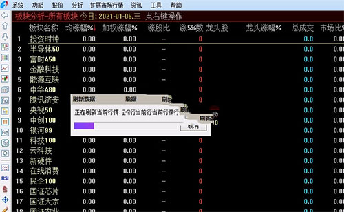 7、在软件左侧可以查看新的数据,切换到新的板块会自动刷新行情;