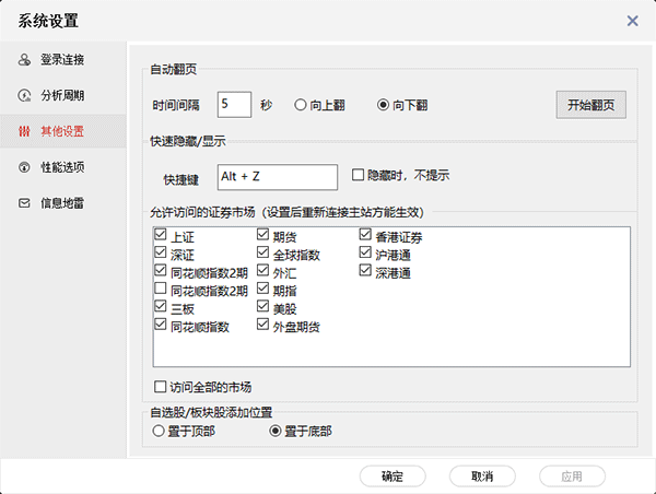 为了方便上班工作炒股用户的使用,我们提供了一键隐藏功能,即通过一个快捷键(俗称“老板键”)将程序界面完全隐藏(在任务栏、托盘区都不留痕迹),如需再次使用,只需要再按此快捷键即可,它的默认的快捷键为:Alt+Z
