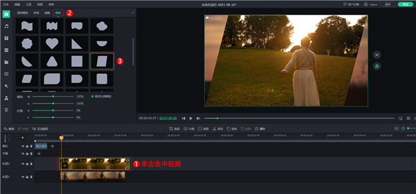 单击选中视频,依次点击【蒙版】,点击心仪的蒙版图形样式。