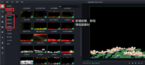 3、新增前景、转场等视频素材