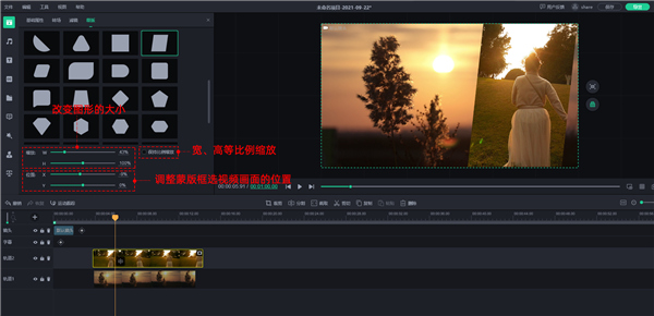 最后根据需求调整图形的大小、蒙版框选视频画面的位置即可。