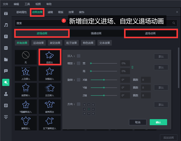 4、新增自定义进场、自定义退场动画