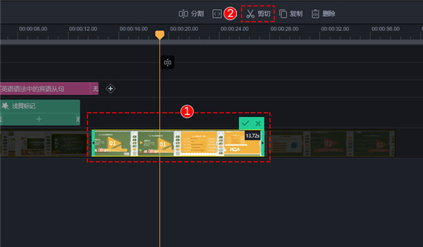直接剪切视频片段,可以截取视频的某部分进行剪切,也可以直接选中整个视频片段进行剪切
