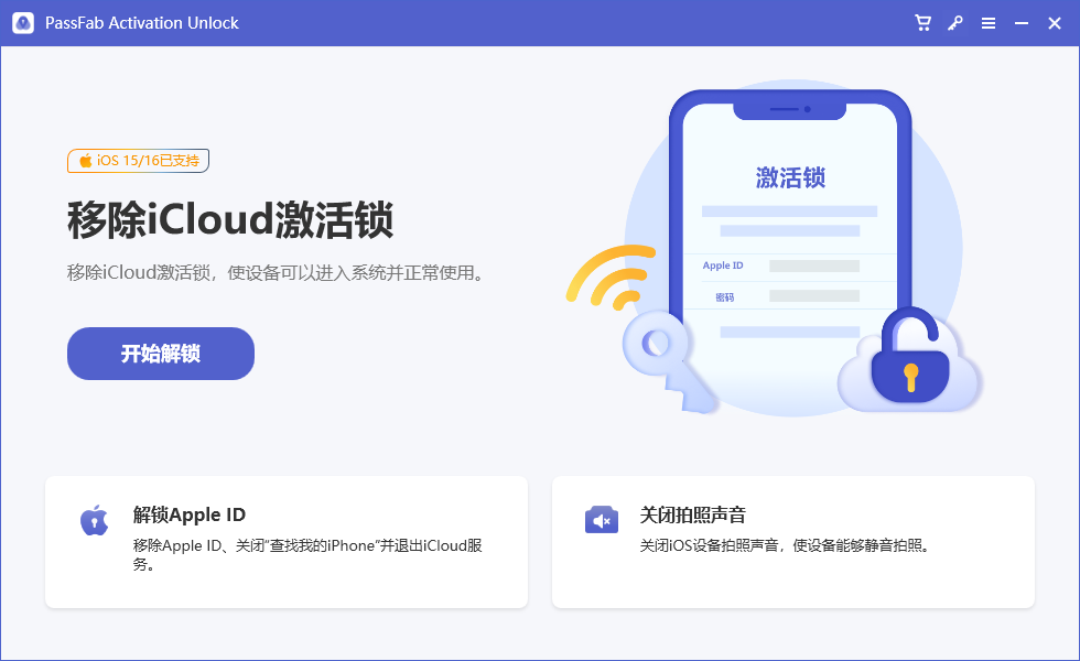 PassFab Activation Unlock是一款专门针对苹果手机开发的解锁工具。在日常生活中,很多用户可能会遇到忘记解锁密码、激活错误、购买二手iPhone,从而导致无法使用ios设备的问题,那么你可以使用这款软件,它可以在短时间内去除iPhone、iPad、iPod tuch上的apple id,并让你重新获得对其的访问权限。同时,该软件支持几乎所有iOS设备,您无需担心支持性的问题。