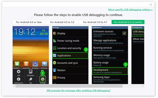 注意:如果Android版ReiBoot无法检测到您的Android设备,您可以尝试以下指南启用USB调试