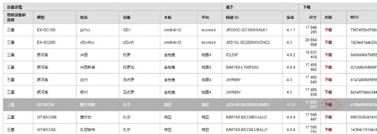 2、找到对应的手机型号,比如GT-B5330,点击下载;