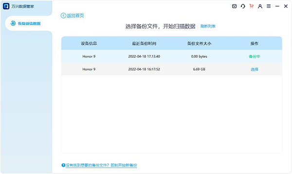 如果想恢复其他华为手机的微信数据,需要关闭软件重新操作;
