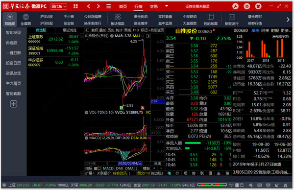 安装和使用很简单:下载解压后双击exe文件安装,支持普通账号和信用账号登录。软件界面直观,功能齐全,包括行情查看、交易操作、自选股管理、一键打新等功能。用户可以查看大盘指数走势图或输入股票代码查看单支股票的详细信息,如买卖数据和营收情况。