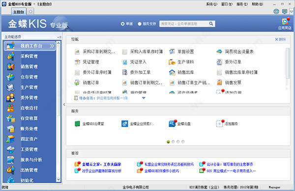 另外呢,在金蝶kis专业版与其他版本相比不仅功能更加的丰富,提供了智能补货、委外管理、金税接口、单据自定义、往来管理、远程应用、个人所得税计算等等功能的支持,还在实现企业决策者对管理信息实时掌控和灵活的财务、业务一体化管理的同时,突破局域网应用模式,集成基于互联网的远程和移动应用,提供高效、实时的异地远程管理和随时随地的移动信息管理,让生产企业管理更简单,赢在管理。总而言之,金蝶kis专业版主要就是以“规范管理 降低成本”为核心理念,面向中小型生产企业管理需求开发设计,旨在提高企业管理能力、完善规范企业业务流程。