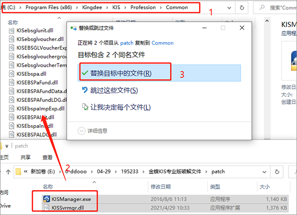 8、先不要运行软件将patch中的文件替换到X:\Program Files\Kingdee\KIS\Profession\Common 文件夹下覆盖原文件。