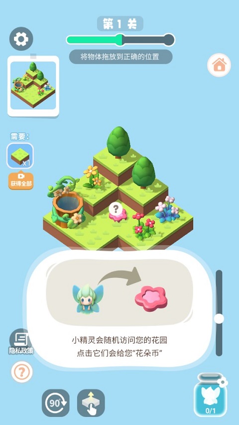 不过要注意,由于关卡设定有指定目标,所以在闯关模式,玩家只需按照指定位置摆放即可。此外,游戏内换有自由模式,这意味着你可以按照自己的想法,自由布局。修建房屋、耕种土地、挖掘池塘、开辟花园。从此,与森林、草地、溪流、花海为伴。海量图鉴,将指导玩家经历的阶段以及过程,并且在小小花园里还有抽奖、签到以及任务等丰厚奖励,别忘了记得领取哦!