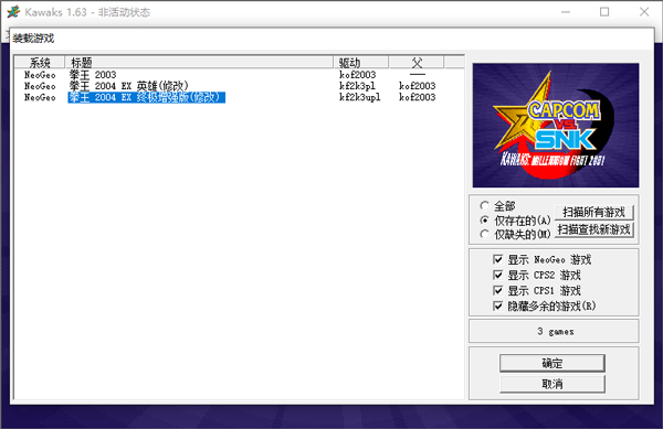 ③:选择“拳皇2004加强版”文件,然后等待一会加载即可进入游戏