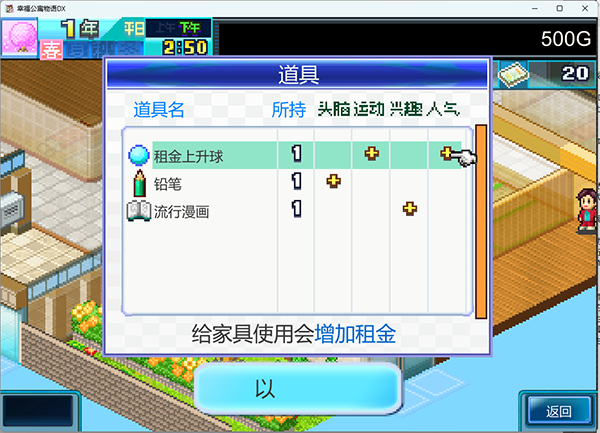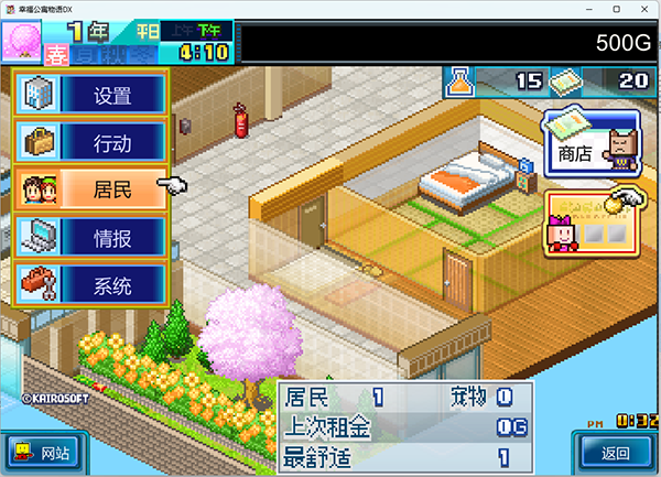 住宅梦物语电脑版(Dream House Days DX)也称之为:幸福公寓物语,是一款移植Kairosoft同名主机游戏的pc平台像素风格的模拟经营游戏,是开罗物语系列游戏中比较知名的一个游戏,并且还有安卓的移植版本,游戏中可以设置语言为中文语言。在住宅梦物语DX游戏中玩家将扮演公寓的经营者,不仅负责公寓的日常管理,更要亲手塑造每一位入住居民的人生轨迹,打造一个充满温馨与梦想的理想住所。游戏的可爱像素图形和细腻的生活模拟玩法,为玩家呈现了一个既真实又梦幻的居住环境。游戏上手简单直观,