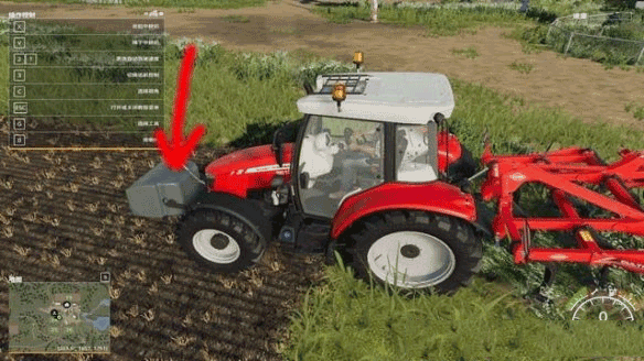 ②V键“降下中耕机”,接着开着中耕机进入前方的农田开始耕耘农田。