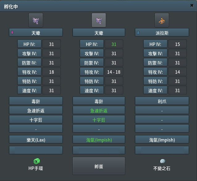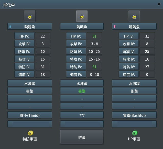 除了亲代双方皆能携带一个项圈控制外,若须控制其他31的个体值,都须使用上述方法。