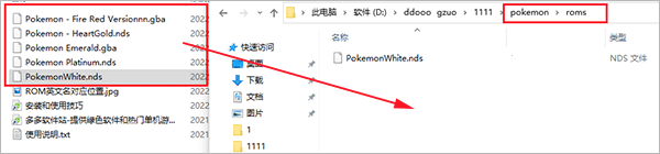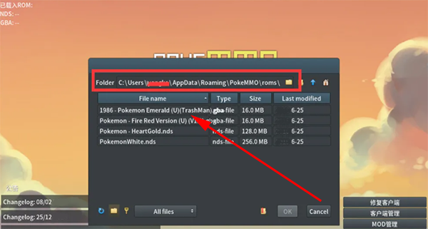 2、然后将解压后的rom文件,导入到【pokemmo/roms】中